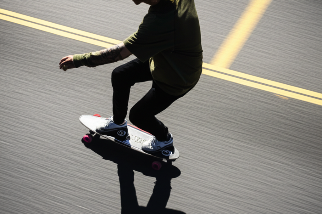 - Find the Right Spot: Smooth, flat pavement is ideal initially. Empty parking lots, bike paths, or quiet residential streets are great. Gentle slopes can add an extra dimension, allowing you to practice speed generation and carving downhill. Look for pump tracks if you have them nearby – they are incredible for surfskating!